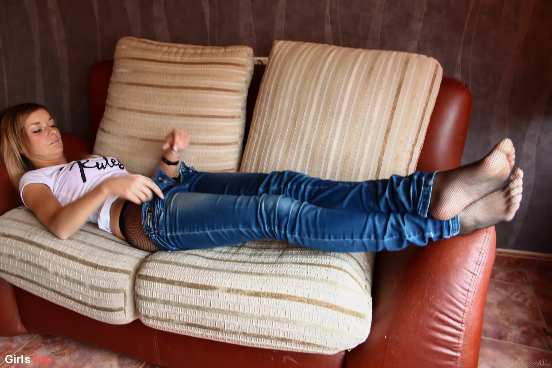 Эротическая фотосессия с улыбающейся Екатериной на диване — Ekaterina D Загружено 2023-11-24